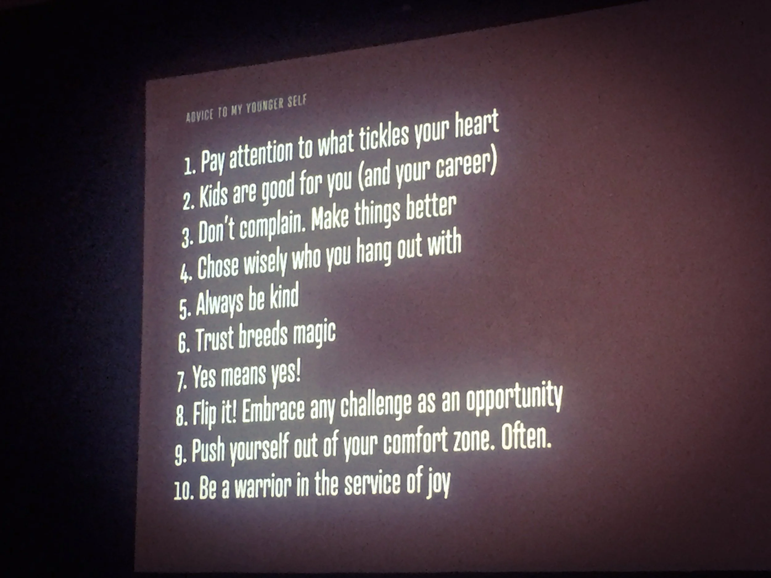 And if you peer closely enough at this photo, you can also read her great list of advice to her younger self (though you had to be there and hear all of her context and great storytelling to fully appreciate the list).